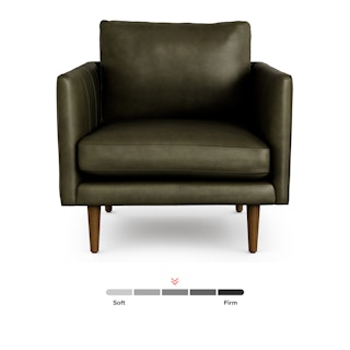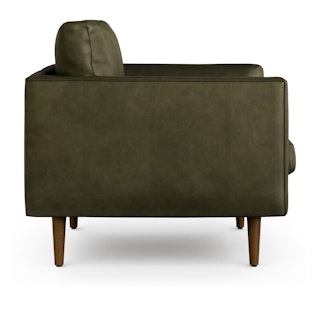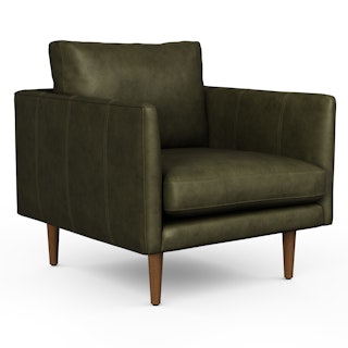 The Burrard chair features sumptuous leather, strong lines, and sinkable cushions. Details such as double-stitched seams, hand-folded corners, and untreated full-aniline leather speak to quality construction, while slender wooden legs offer stability without adding bulk. Sit back with a strong drink and a good book, and reflect on your accomplishments — such as your good taste.