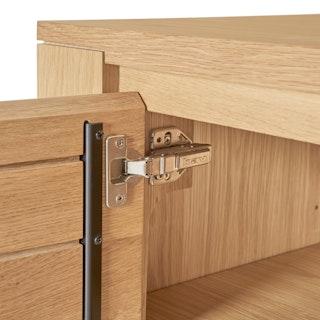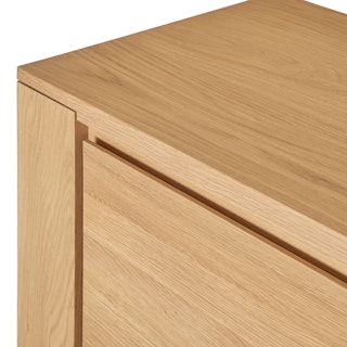 Not one to be shy, our Dako Cabinet shows off with subtle cut-outs at its connecting corners. Made of solid and veneered oak, this cabinet may be minimal but its chunky legs serve as solid building blocks for a modern statement piece. Complete with internal shelving, the Dako stashes the goods on the inside to keep your space looking nothing short of polished on the outside.