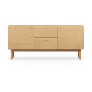 Embodying all the light and airy qualities of the Scandi design style, the Heidi sideboard is purposely unembellished to let its thoughtful details shine: solid-wood legs and apron, with subtle radiused corners, highlight its beautiful wood grain. Soft-close drawers and doors, adjustable shelving, and cable management are all there to accommodate your storage needs. As the Swedes would say... "Hurra!"