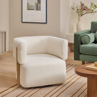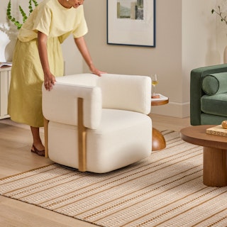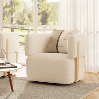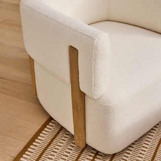 Picture this: it's the weekend, you've got your coffee and your blanket, and you're ready for some TV binging. You surround yourself in bouclé's signature bouncy texture, and you realize the remote is just out of reach. What do you do? Thanks to Julie's 360° swivel mechanism, you'll never have to leave your spot.