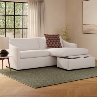 A minimal look with maximum impact… and maximum seating area. The Landry marries laid back comfort with elegant details to produce a sectional that is as comfortable hosting movie night as it is a cocktail hour. Sloping sleigh-style arms and clean straight lines make it simple to pair this sectional with many different styles. Try it with a warm white backdrop, against a wildly patterned rug, or draped with your favorite blanket. The Landry is easygoing style at its best.