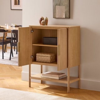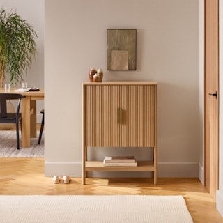 With brass handles, fluted doors and spindle legs, the Liv adds a touch of elegance to an otherwise chaotic part of the home. Open and closed storage ensures ample space for whatever you need to stash away - shoes, dog collar, keys, you name it. Whether you’re making a statement or just trying to organize that entryway chaos, Liv will be a calming presence when you come home.