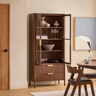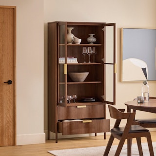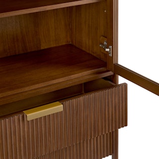 With brass handles, fluted drawers, and large statement glass doors, the Liv adds a touch of elegance to your dining room. Open and closed storage ensures ample space for whatever you need to stash away - linens, fine china, glassware, you name it. Whether you’re making a statement or just trying to organize that dining room chaos, Liv will be a calming presence at your next dinner party.