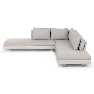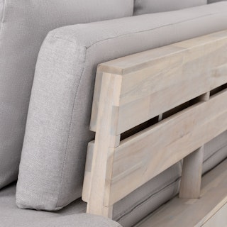 Stay a while. The Lubek Sectional is built from a solid acacia wood base. The sofa is set close to the ground, encouraging you to really sink into (or even lie down on) those weather-resistant cushions. Streamlined cushions and super clean lines add to the Lubek’s modern look, while the acacia wood makes the sofa easy to pair with any backyard set up. We call this look “low key modernism.”