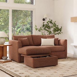How do you want your sofa to feel? Elevated, comfortable, calm, and collected. With clean details and pleasing design heft, the Marina reversible storage sectional manages to feel at once laid-back and put together. Generously padded seats and armrests encourage long periods of meandering, while the hidden storage below the chaise can hide all kinds of goodies. Upholstered with Napa fabric, the Marina is treated with a stain-repellant C0 finish, offering exceptional protection to your sofa while being free of gross forever-chemicals. Throw on your favorite 90s romcom and bask in a little nostalgia.