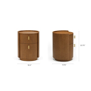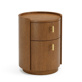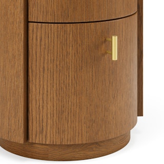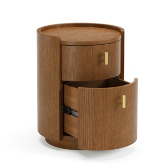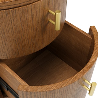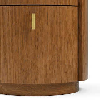 For those who appreciate a refined aesthetic without sacrificing functionality, the Miila features two spacious drawers outfitted with brass knobs, which finish your ample storage with a touch of sophistication. Along with its soft, rounded shape atop its plinth base, the Miila is visually comforting, creating a calming bedside atmosphere. Charm, refinement, storage... what else could you want from a nightstand?