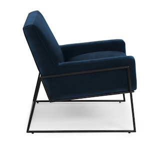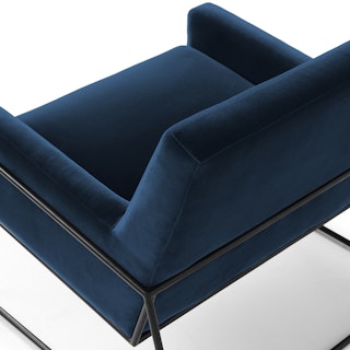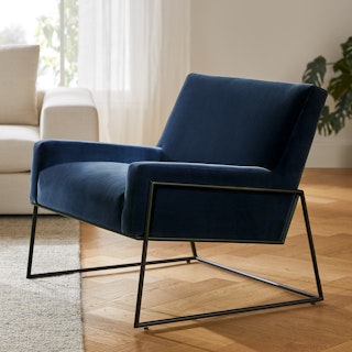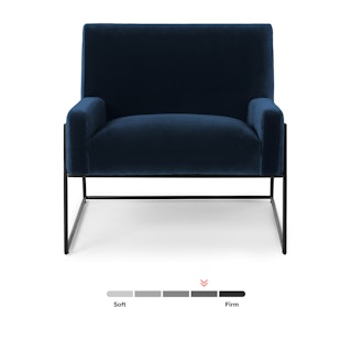 Classic starpower. The Regis armchair has that laid-back air and flashy elegance that we love in our favorite talk show hosts. A wide padded seat and armrests make it perfect for reclining in while you chat your best friend through her romantic options, while the powder-coated steel frame suggests your underlying no-nonsense attitude. Upholstered in plush cotton velvet, the Regis is the perfect combination of tough and tender — great for your living room, your den, or wherever you like to gossip. Er… discuss.