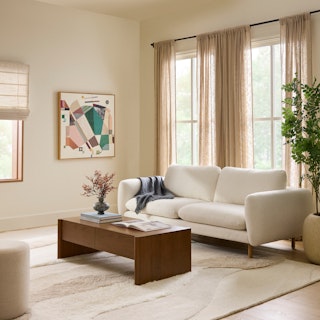 More beautiful than the sum of its parts. The Sanders sofa comprises striking panels that make for a simple silhouette with interesting design details. Loose base and back cushions make this sofa easy to care for, and great for building forts. And who doesn’t want a stylish, Scandi-inspired sofa that transforms into a beautiful fort?