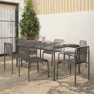Love this table and chairs- looks great in our backyard and seems durable.