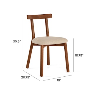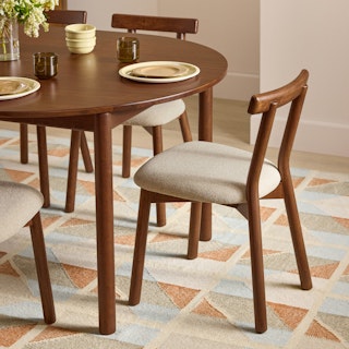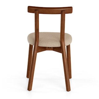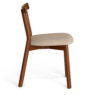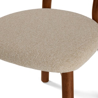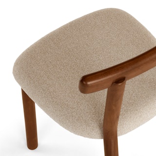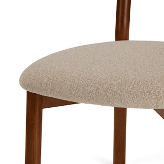 Minimal, soft, and compact, Ulka embraces its Scandinavian roots like a pro. With its curved backrest seamlessly blending into its rounded-edge frame, Ulka's signature cushy upholstery details sit cozily atop its subtly angled legs. Make the desire to remain at the table strong — even well past dinner's end.