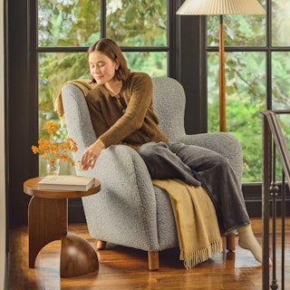 Come movie night, everyone will be eyeing a spot on the Archie. With its high back, supportive arms, and textured curly threads, it's like a big bear hug — without the claws. A generous seat depth built upon a slightly reclined back and seat? Say no more; we'll take two.