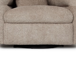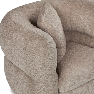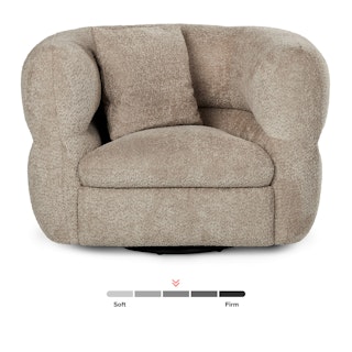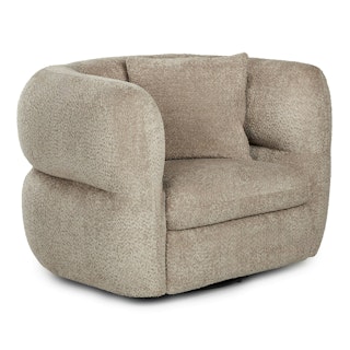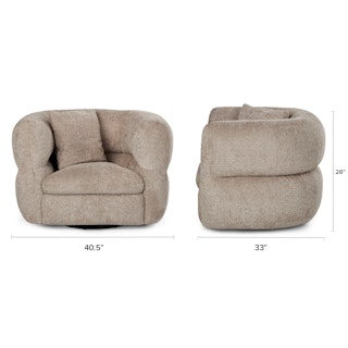 What better way to top off the day than lounging in an embrace of the Quinn? With its overstuffed cushions and ever-so-soft fabric covers, the Quinn invites you to unwind. Say goodbye to rigid, uncomfortable sofas and hello to pure comfort — just don't blame us if you get too dizzy spinning around on its swivel base.
